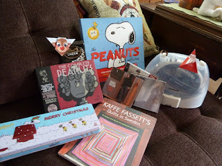 My "loot." Kaffe Fassett, Peanuts, James Taylor, chocolate, and a fancy new cordless iron. I am happiness filled. :-)