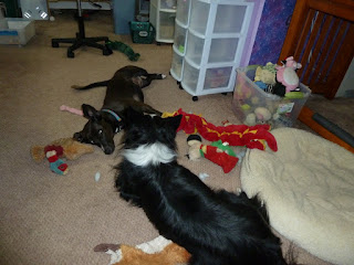 While I work in here this is what goes on behind me. They are unstuffing toys (and farting).