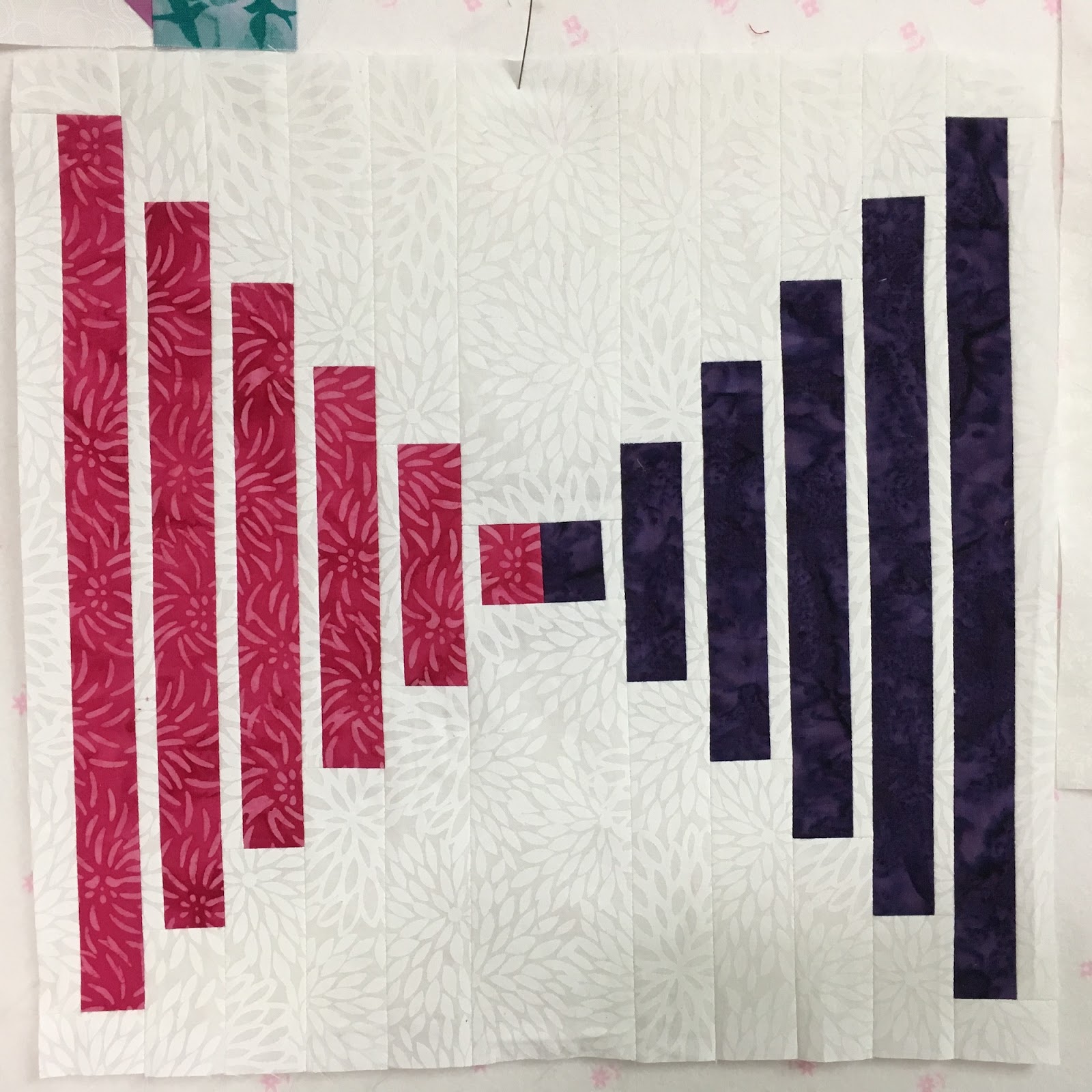 This is the "echo" block. I decided using pink and purple would represent the yin and yang of The Tramp's and my favorite colors.